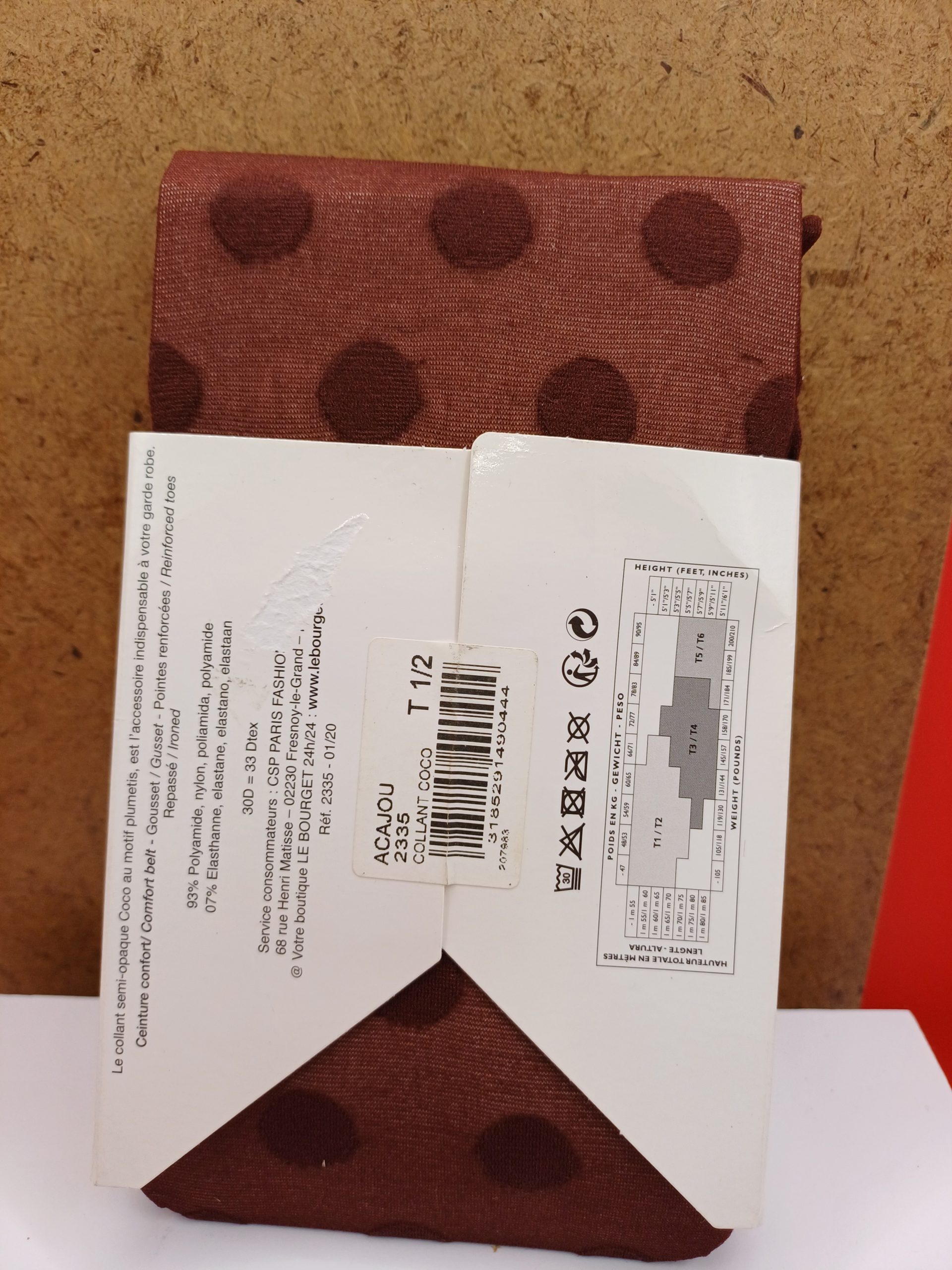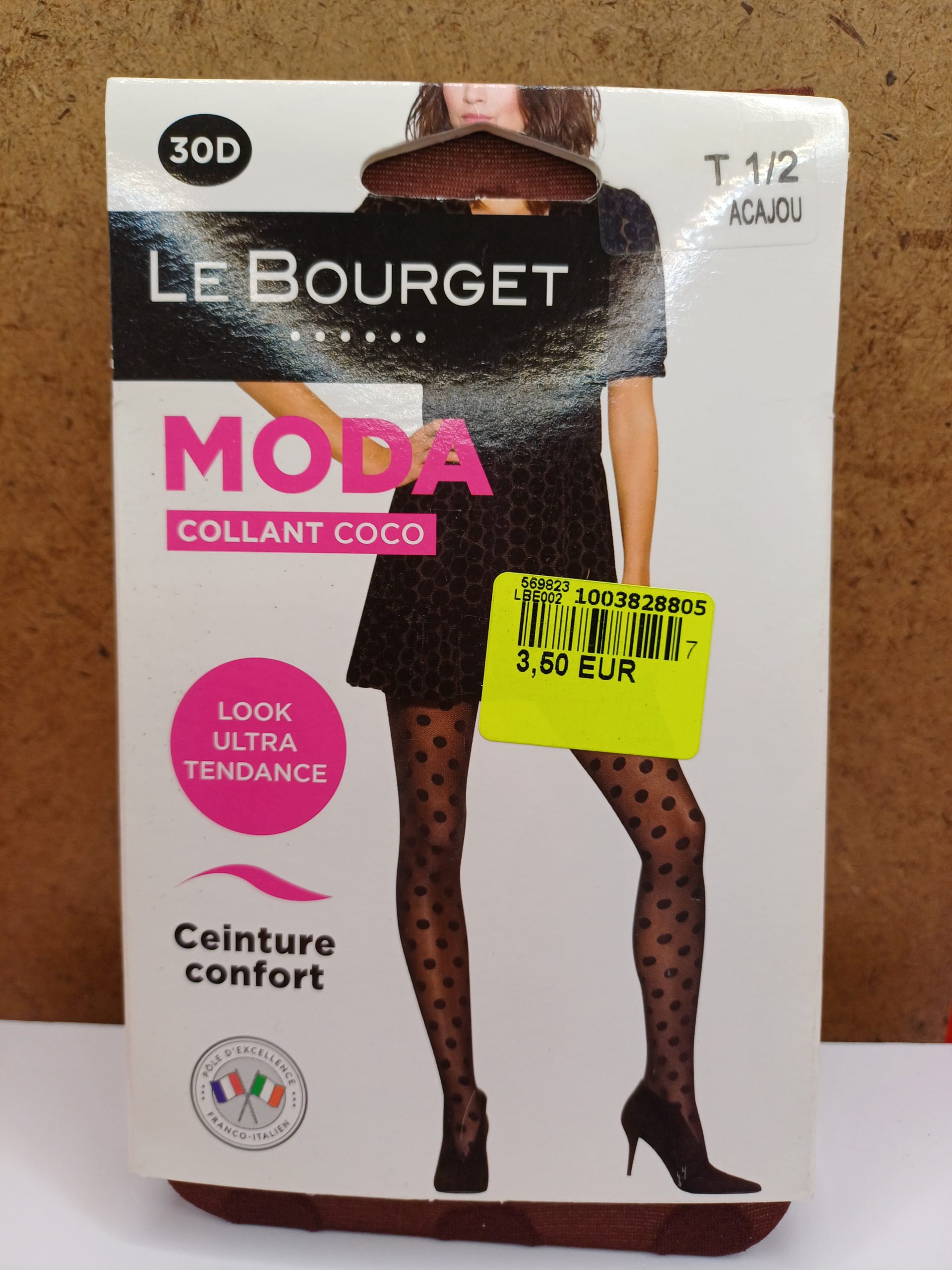 Collant semi opaque coco au motif plumetis, Ceinture confort, gousset, pointes renforcées, repassé. 30 Deniers